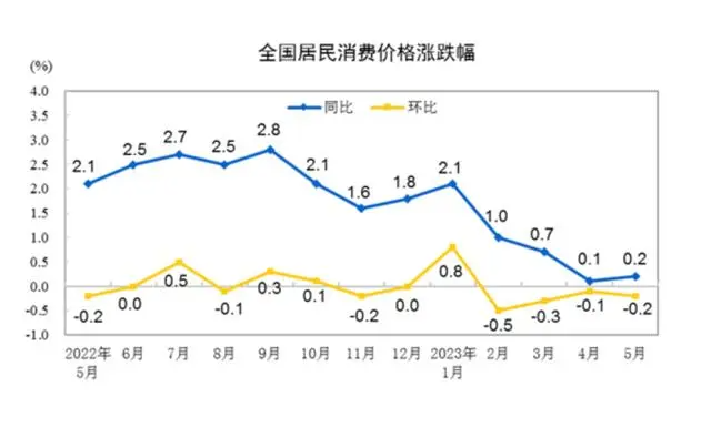 6月9日,国家统计局发布数据显示,5月份,全国居民消费价格(CPI)同比上涨0.2%,较上月回升0.1个百分点,但仍为2021年3月以来次低。