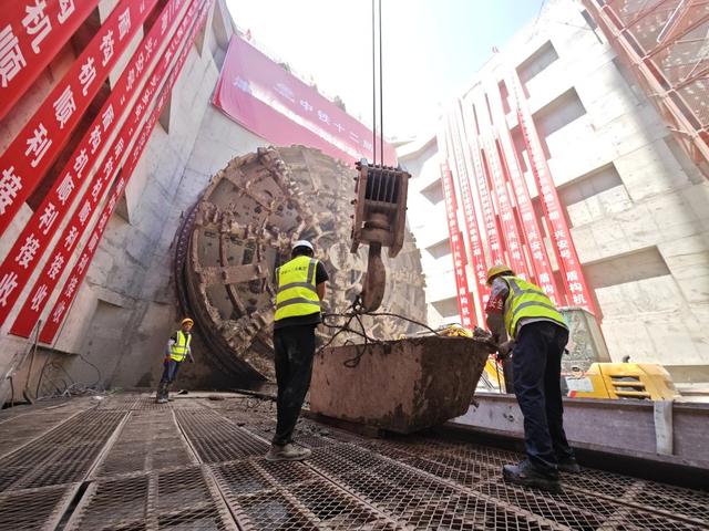 2023年6月22日,中铁十二局的工人在天津至北京大兴国际机场铁路的工地现场施工。新华社记者 邢广利 摄