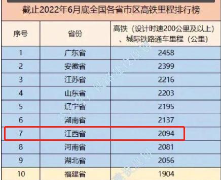 而对于时速200公里以上的高铁和城际铁路来说,江西省的里程数也高达2000公里。