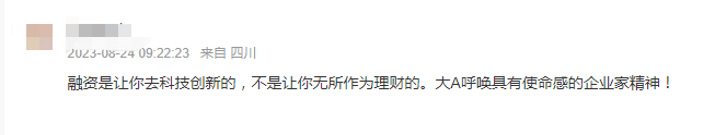 还有网友对超额融资的现象提出了质疑,感慨道“无节制的融资,对上市公司来说钱实实在在是大风刮来的”。