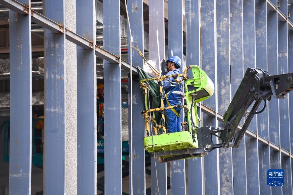 8月30日,在河套深港科技创新合作区首批重点项目河套壹号(原名:深港科创综合服务中心)建设现场,中建深装的工人进行幕墙钢龙骨焊接作业。新华社记者 梁旭 摄