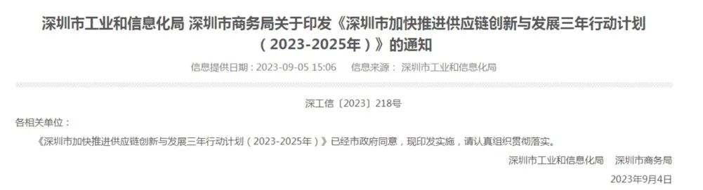 导读:据深圳市工业和信息化局9月5日消息,深圳市工业和信息化局、深圳市商务局印发《深圳市加快推进供应链创新与发展三年行动计划(2023-2025年)》(《行动计划》),部署了加快先进制造业供应链创新、推动供应链服务高质量发展、提升金融对供应链创新的服务水平等7方面共25项主要任务。
