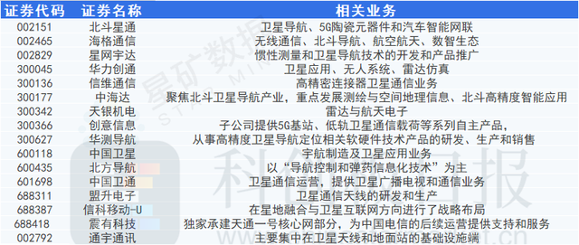 经星矿数据和《科创板日报》不完全梳理,与A股卫星通信相关的十多家上市公司,涉及卫星制造、地面设备制造、卫星运营等产业链上下游。