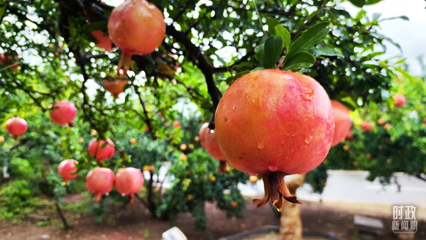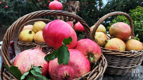 △种植园内新鲜采摘的石榴。(总台央视记者钟信伟拍摄)