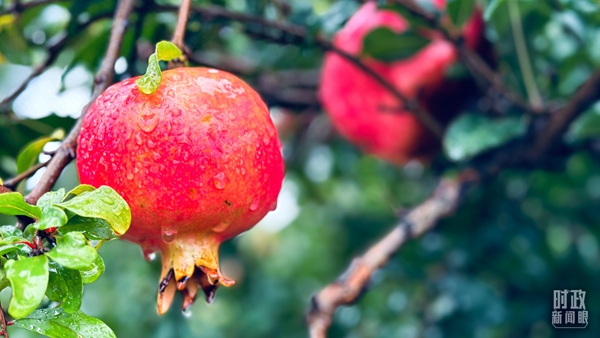 △一场秋雨过后,石榴更显晶莹。(总台央视记者李辉、范一鸣拍摄)