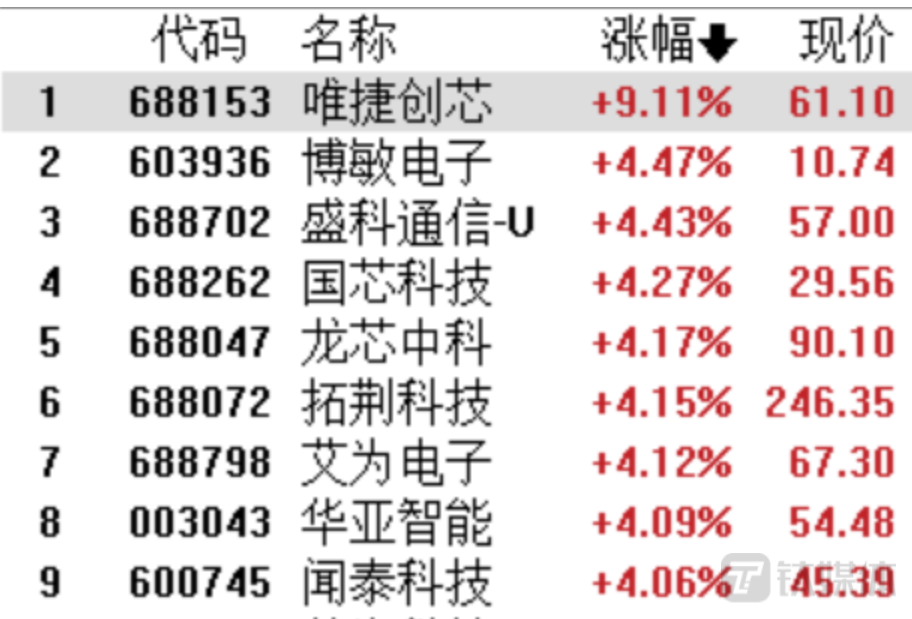 或受此消息影响,今日早间,韩股三星、SK海力士双双高开。今日上午A股半导体产业链也发力走高,唯捷创芯涨超9%,博敏电子、国芯科技、闻泰科技等跟涨。值得注意的是,为加码对华科技限制,拜登政府去年实施全面的出口管制措施,规定三星电子和SK海力士需要获得许可证才能将美国芯片制造设备带入中国。不过,拜登政府随后向两家芯片制造商颁布为期一年的出口管制豁免。