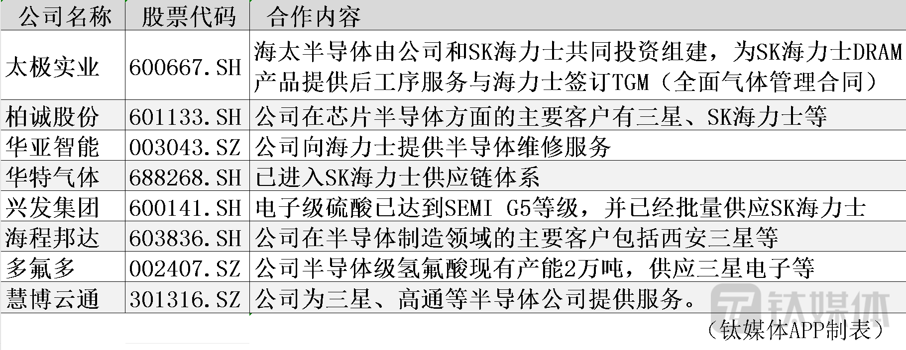有分析指出,随着豁免清单的落地,三星电子与SK海力士望保持内存市场领先地位,同时也将利于国内半导体尤其存储芯片等领域的供应格局的稳定,产业链相关合作公司有望受益。