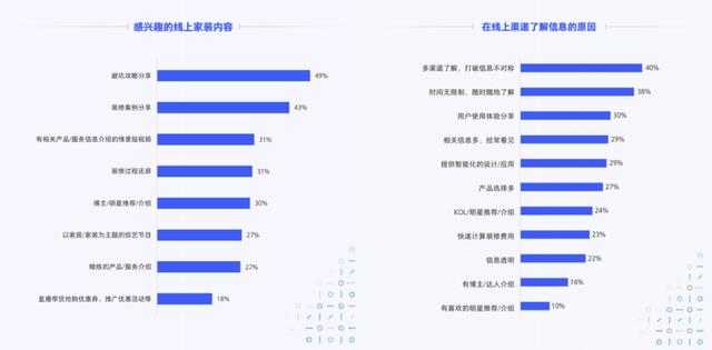 家装消费属于重决策,消费者“卷入度”高,会花时间对比挑选,以及储备相应的家装知识,他们对家装内容有着天然的需求。在白皮书中显示: