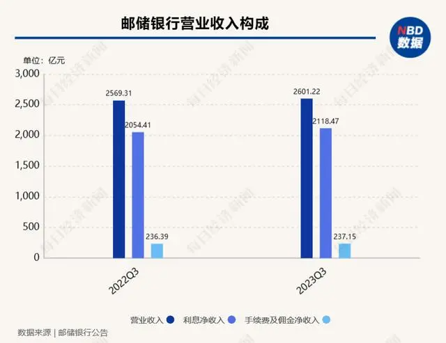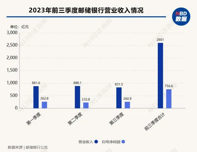 邮储银行:前三季度实现营业收入2601亿元,个人存款较上年末增长6.67%