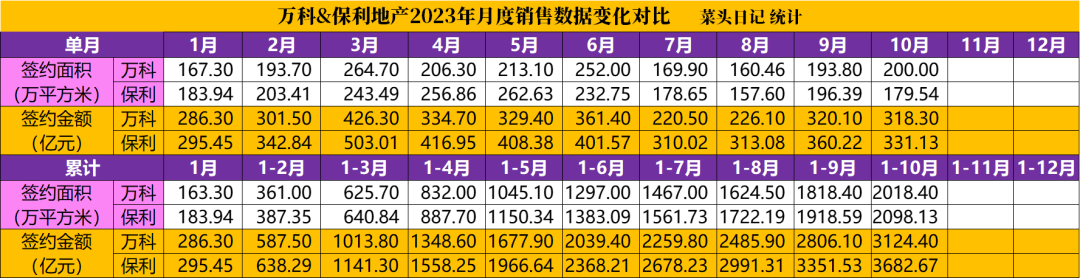 下面是万科和保利的销售数据对比,依然是保利略胜。