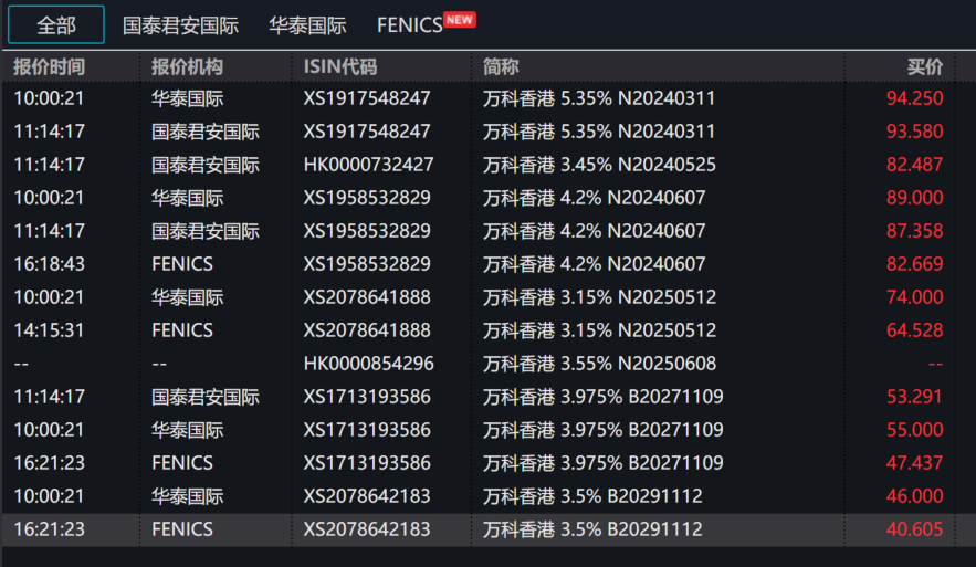 最后再说说万科的事情,截止菜头写这篇文章的时间,万科半年内到期的美元债已经全部回到了80以上,收益率快速下降。