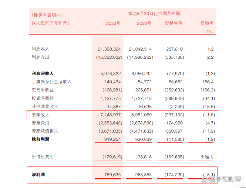 从营收结构看,一直以来利息净收入的占比最大。但在今年上半年,盛京银行利息净收入较2022年同期减少0.78亿元,同比下降1.3%。非利息净收入表现更为不佳,较2022年同期减少8.59亿元,同比下降42.4%。
