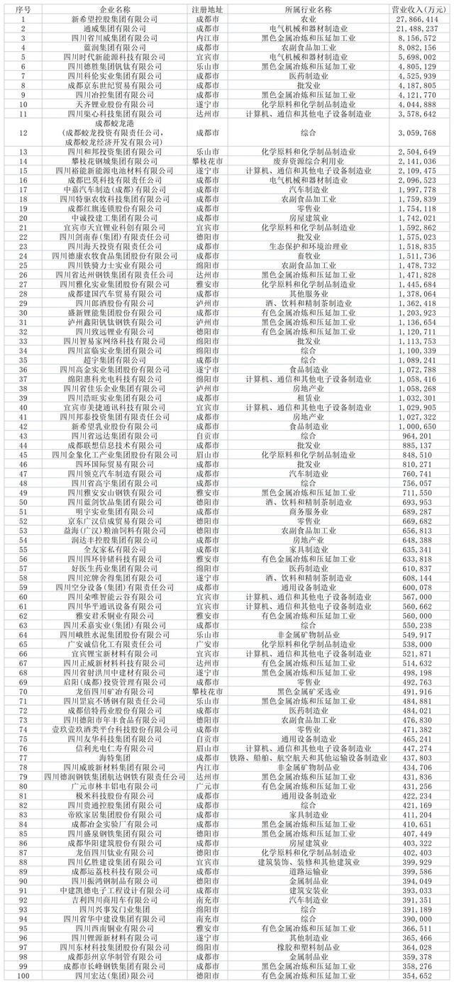 有42家企业跻身“百亿俱乐部”,较上年增加12家,成都蛟龙港、红旗连锁、剑南春集团、郎酒股份、新希望乳业等知名企业均榜上有名。排在榜单6-10位的依次是德胜钒钛、科伦实业集团、成都京东世纪贸易、四川冶控集团、天齐锂业。
