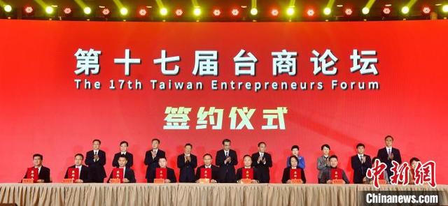 中新网淮安11月15日电 (徐珊珊)第十七届台商论坛11月15日在江苏省淮安市举行。开幕式上,全国台湾同胞投资企业联谊会内销拓展工作委员会示范基地揭牌,23个台资项目现场签约,总投资14.1亿美元。