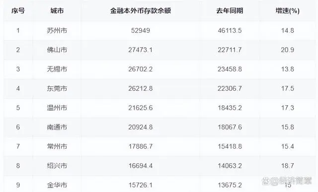 佛山市的资金增速最高,达到了9%,位居地级市资金总量排名第一。