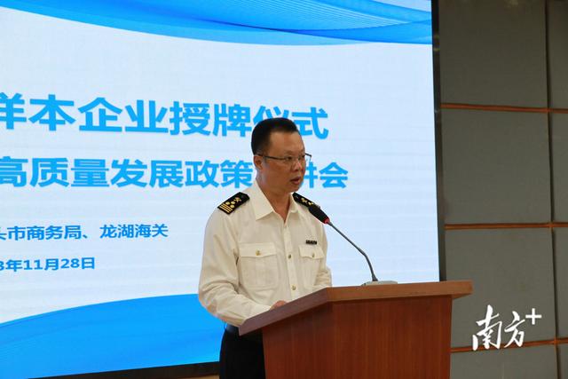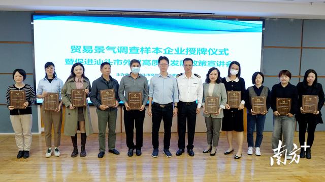 11月28日,汕头市商务局联合汕头海关所属龙湖海关举行促进汕头市外贸高质量发展政策宣讲暨贸易景气调查样本企业授牌仪式。龙湖海关辖区共有16家企业入选中国海关贸易景气统计调查样本企业。