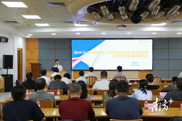 会上,开展了促进汕头市外贸高质量发展政策宣讲,就海关法律法规、稽查主动披露政策、企业关务性合规管理、市场采购贸易相关政策、跨境贸易便利化等内容开展细致解读,并着重介绍了海关总署推动加工贸易持续高质量发展16条改革措施,帮助企业充分了解和用好用足各项政策,切实推动海关的“好措施”转化为进出口企业手中的“真金白银”。