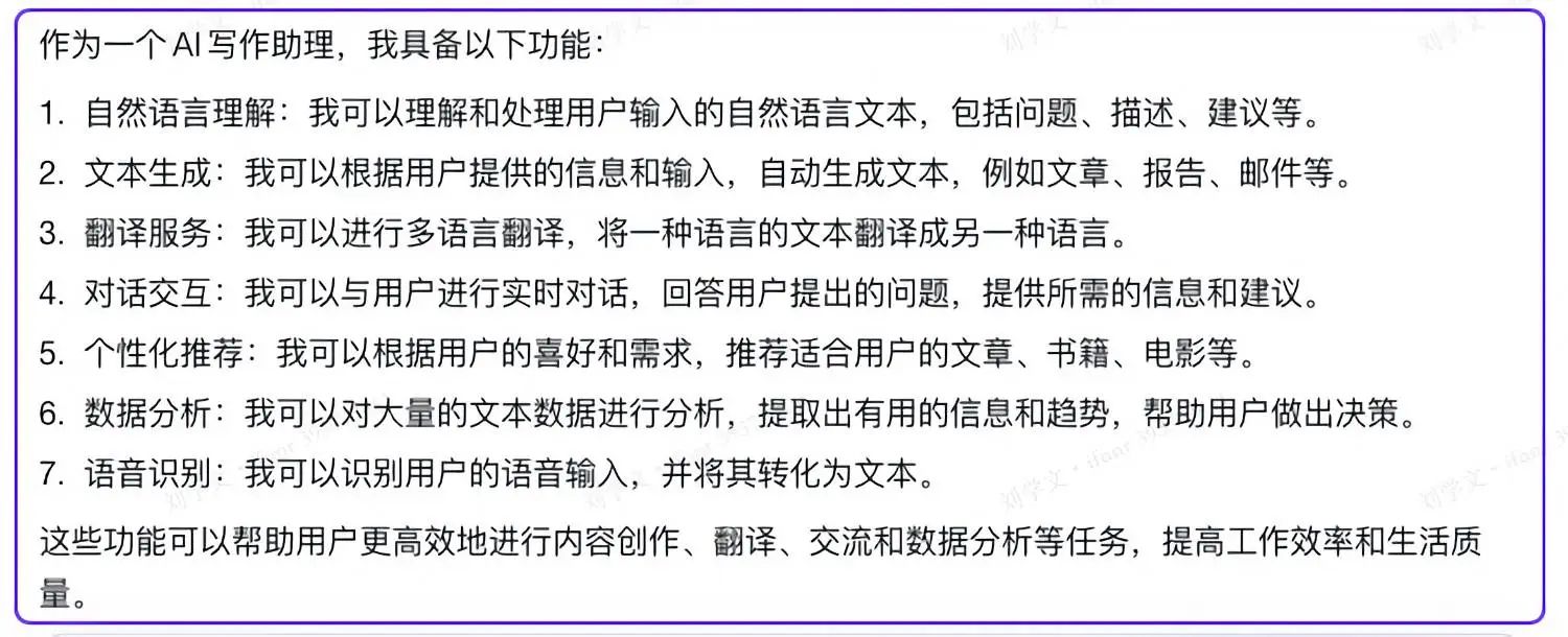 而在有些领域,比如想一个营销策划简案的时候,它的作用就是变成提醒我,是不是有些地方我漏掉了,因为它思考得确实很全面。