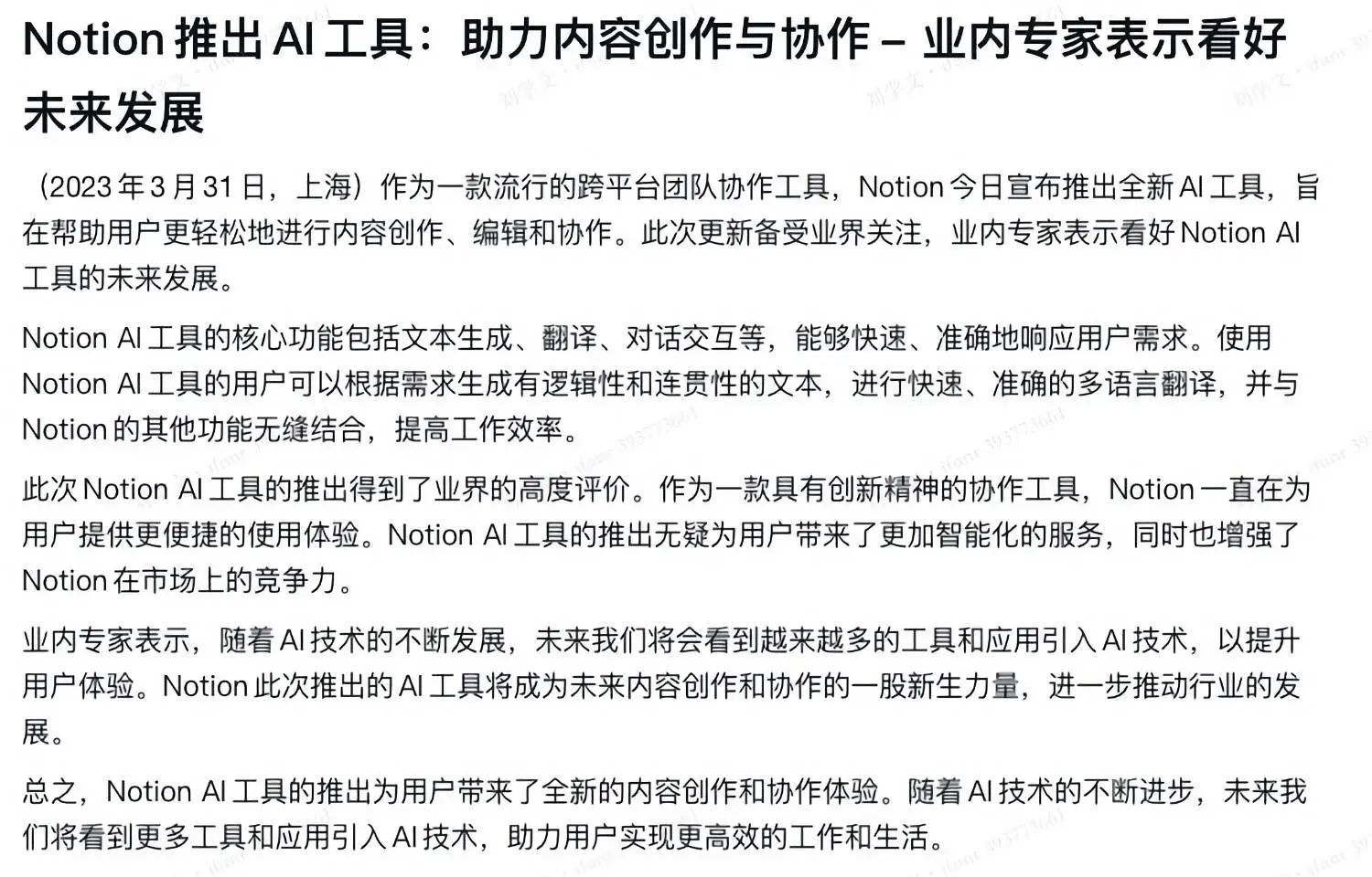 接下来,我们又用 Notion AI 完成了一篇「金山轻文档推出 AI 工具」的新闻稿。