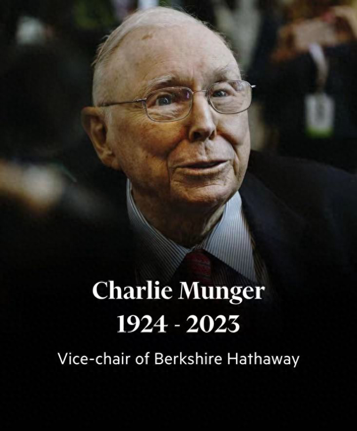 11月28日当地时间晚上,伯克希尔哈撒韦发布讣告,公司首席副董事长查理·芒格在加州一家医院离世,享年99岁。
