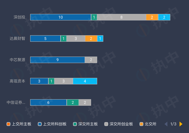 另据执中数据,被投企业IPO数前五的机构分别为:深创投、达晨财智、中芯聚源、高瓴资本以及中信证券投资。