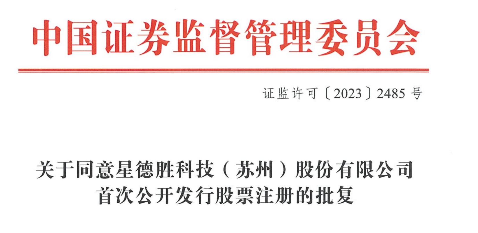 1月26日,据上交所披露,证监会同意星德胜科技(苏州)股份有限公司(以下简称“星德胜”)首次公开发行股票的注册申请。
