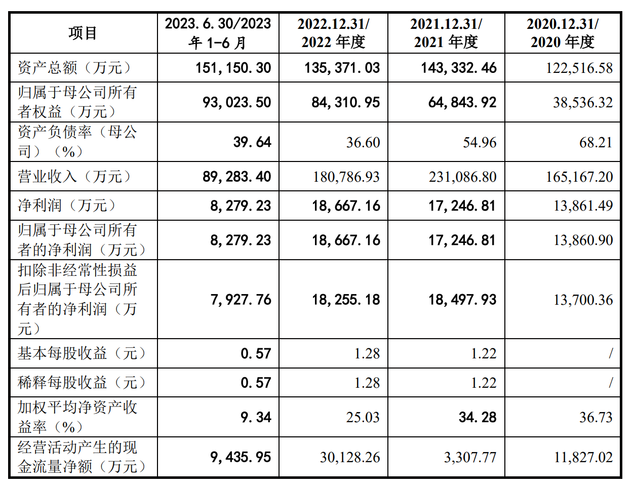 2020年度、2021年度、2022年度和2023年1-6月,星德胜营业收入分别为16.52亿元、23.11亿元、18.08亿元、8.93亿元;净利润分别为1.39亿元、1.72亿元、1.87亿元、8279.23万元。