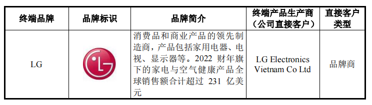 星德胜部分直接客户与其对应的终端品牌情况如下: