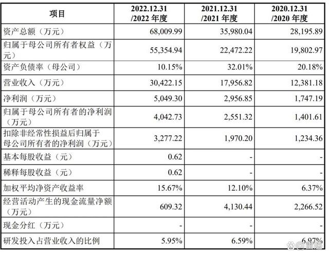 招股书显示,科利德2020年、2021年、2022年营收分别为1.24亿元、1.8亿元、3亿元;净利分别为1747万元、2956.85万元、5049万元;扣非后净利分别为1234万元、1970万元、3277万元。