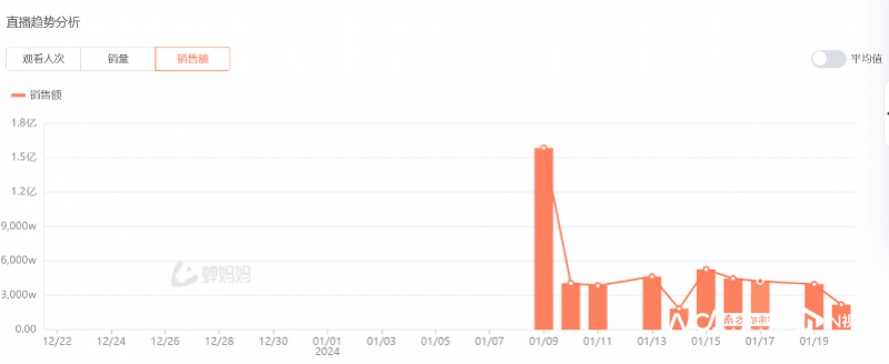 目前,与辉同行直播间保持着每日开播两次的频率,分别是早上七点到九点开始,以及晚上六点开始。蝉妈妈数据显示,从1月9日开播以来,在1月9日当天与辉同行直播间销售额破亿,此后的单日销售额均为2500万-5000万元,有几日则是1000万-2500万元。