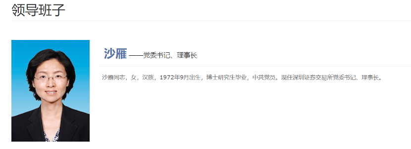 2020年7月,中国证监会任命沙雁为深交所总经理。