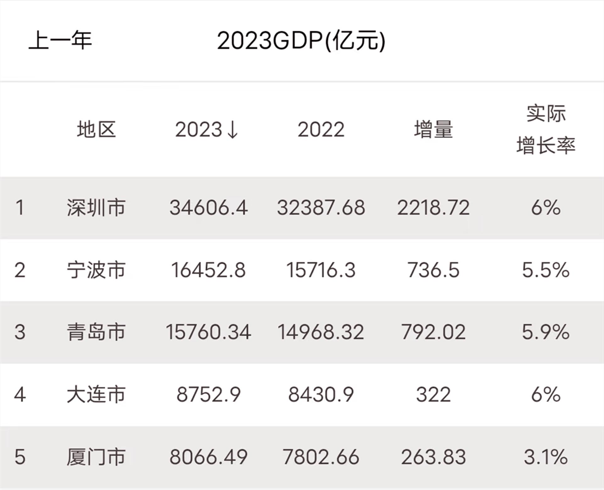 2023年5个计划单列市GDP:青岛将超宁波,厦门8000亿,深圳最强势
