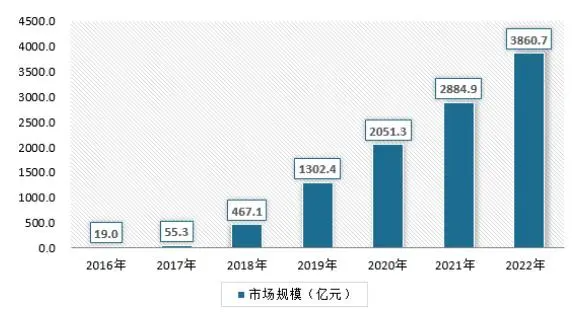 以我们国家为例,2016年到2022年,我国视频制作市场规模分别为19.0亿元、55.3亿元、467.1亿元、1302.4亿元、2051.3亿元、2884.9亿元和3860.7亿元,市场规模增长迅速。
