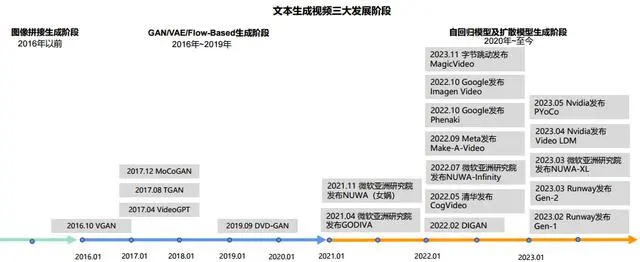 随着文生图技术的精进与成熟,对于文生视频的技术的发展和关注逐渐增加。近3年时间,以Runway为代表的文生视频初创公司不断涌现,谷歌、Meta、微软等互联网巨头同样参与其中,国内目前文生视频技术也紧跟其后。