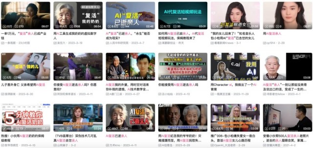 在B站等平台上,不乏讲述用AI“复活”亲人,弥补遗憾的视频,比如“用AI工具生成我奶奶的虚拟数字人”“AI复活我的外婆,用时空对话来弥补我的遗憾”等,还有大量教你如何用AI复活亲人的保姆级教程。