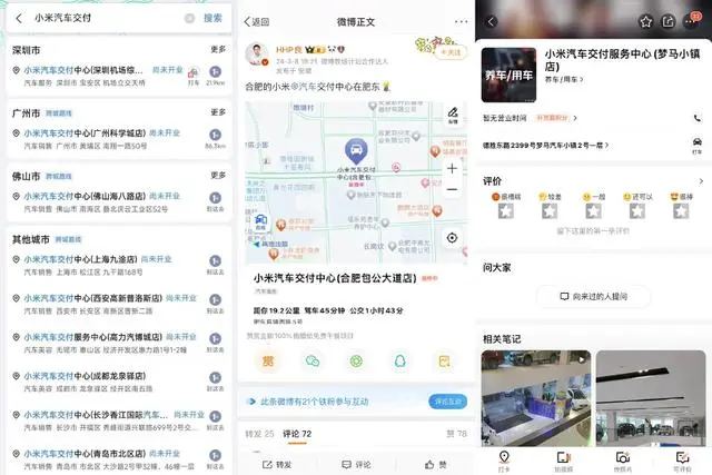 包括北上广深在内,小米汽车交付中心已经在多地的地图App中上线。