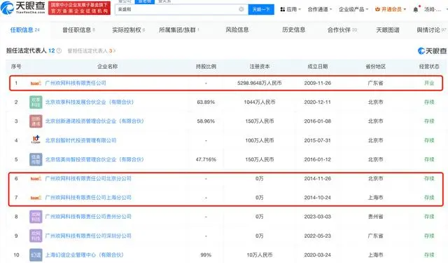 公开信息显示,吴盛刚为十方基金创始合伙人,也是宽带资本和云海创投的投资合伙人,田溯宁为宽带资本创始人、董事长,以及亚信联合创始人。天眼查信息显示,吴盛刚还是欢网科技及其多家子公司的法定代表人。