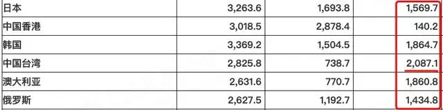 剩余还有两个国家是澳大利亚和巴西,巴西是南美洲国家,巴西和我们的关系非常不错,而且都是金砖成员国。所以,整个东盟(南海地区)、东北亚地区(东海)、台湾(台海地区)是我们主要的贸易势力范围,这几个地方就不能乱,不到万不得已,无论是对台、还是对菲,或是日韩的挑衅,我们都是保持战略定力,原因也很简单,这三大地区占了我们大部分贸易。