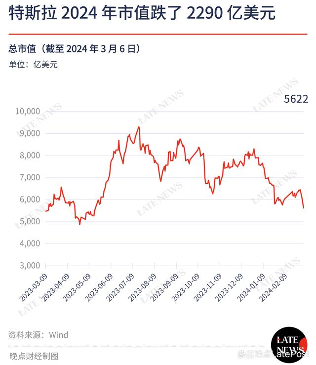 年初至今,特斯拉差不多跌掉1/3个自己,损失了约2290亿美元市值——这相当于1.2个阿里巴巴(1842亿美元)。