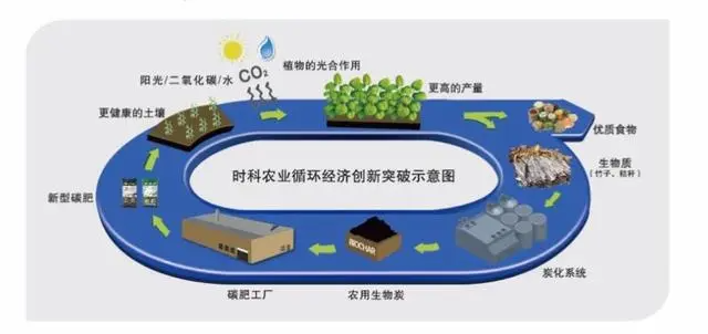 蒲加兴表示,时科生物自研开发的“废弃物炭化制肥还田”低碳循环模式及成套技术装备,能够将农林废弃物、畜禽粪便、沼渣等有机废弃物制成新型生物炭基肥料的产品并还田应用,实现土壤培肥、土壤改良、污染修复及减排固碳的目的。“每建一个循环经济项目,固碳减排大概在4-5万吨。”