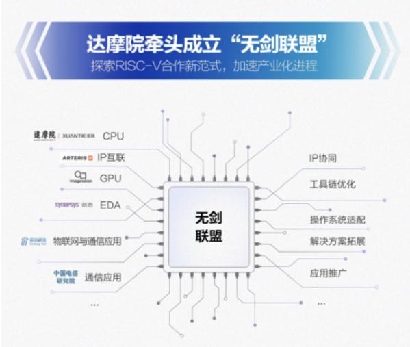 为加速RISC-V产业化进程,达摩院还发起成立“无剑联盟”。联盟成员将基于玄铁处理器共同推进IP协同、工具链优化、操作系统适配、解决方案拓展、应用推广等工作,降低RISC-V开发成本,缩短RISC-V产品及应用上市时间,让终端厂商能以更快的速度找到更适配的RISC-V方案。