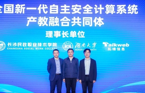 10月10日,全国新一代自主安全计算系统产教融合共同体成立大会在湖南长沙举行。会上,由湖南省教育厅、湖南省工业和信息化厅指导,拓维信息、湖南大学、长沙民政职业技术学院牵头组建的全国新一代自主安全计算系统产教融合共同体(以下简称“共同体”)正式成立。