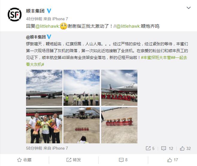 8月17日,顺丰宣布,在粉丝和顺丰员工的见证下,顺丰航空第40架自有全货架安全落地深圳宝安国际机场。据了解,今年4月17日,顺丰集团拿下了第17架B757-200全货机,全货机数量累计增长到39架。
