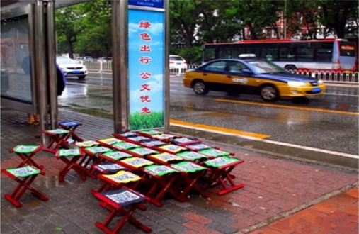 和共享单车一样,共享马扎也带来了占道、影响市容和公共交通等问题,在网友发布的照片里,一些马扎被放在了盲道上。